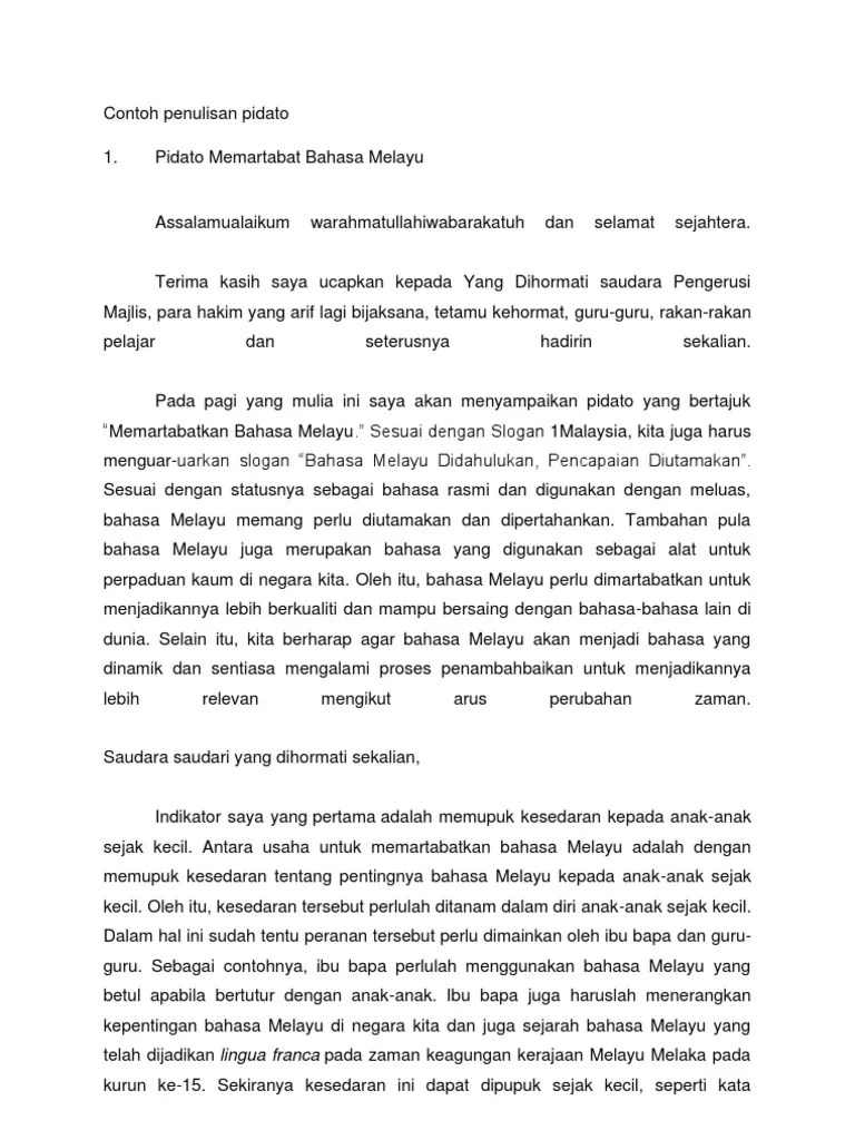 Sekolah Contoh Pidato Bahasa Melayu - Doc Teks Pidato Dello Ppismp Pj Academia Edu